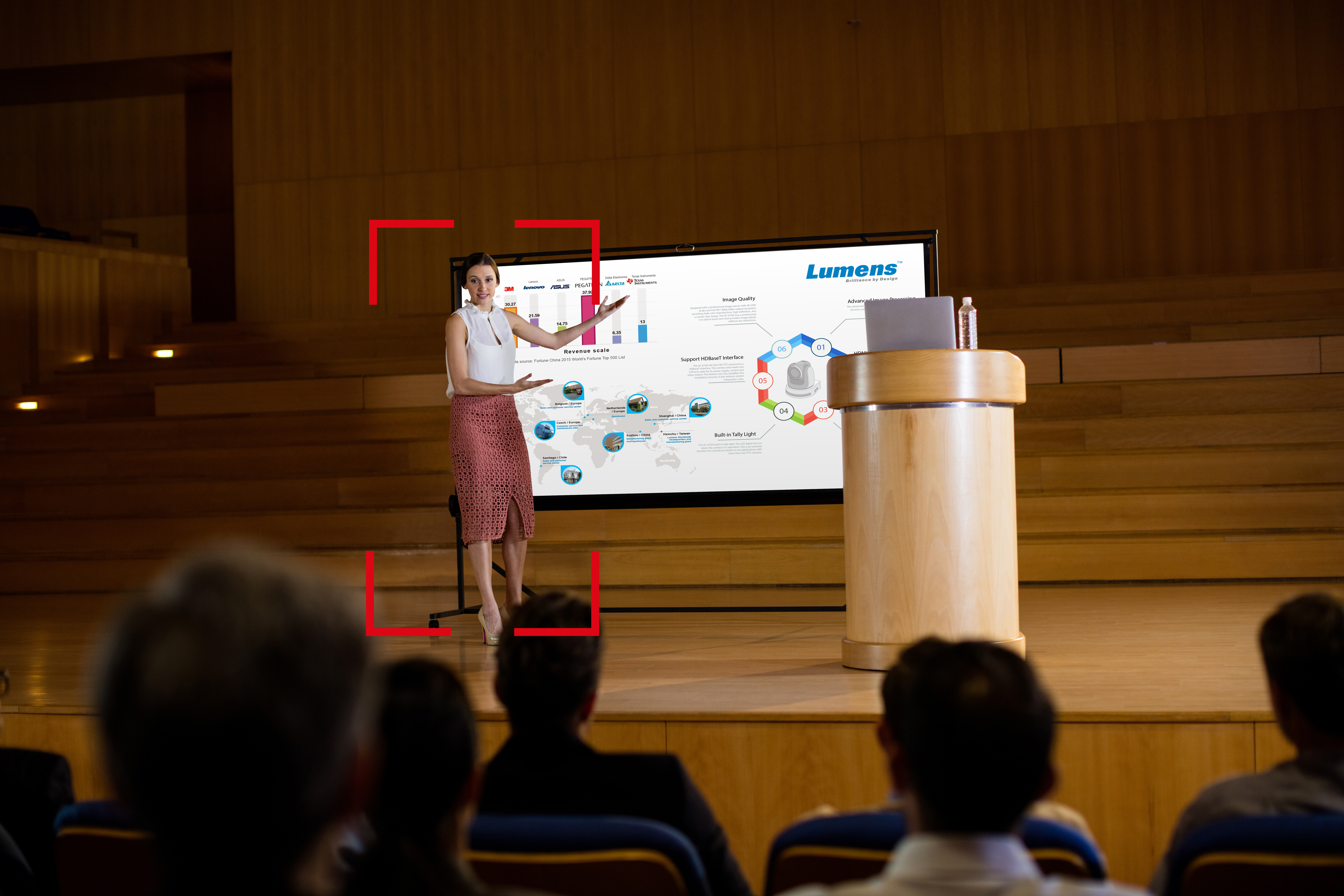 此機具備三種自動追蹤模式——全域追蹤、講台追蹤與區域追蹤模式,提供精準且穩定的追蹤與畫面呈現。