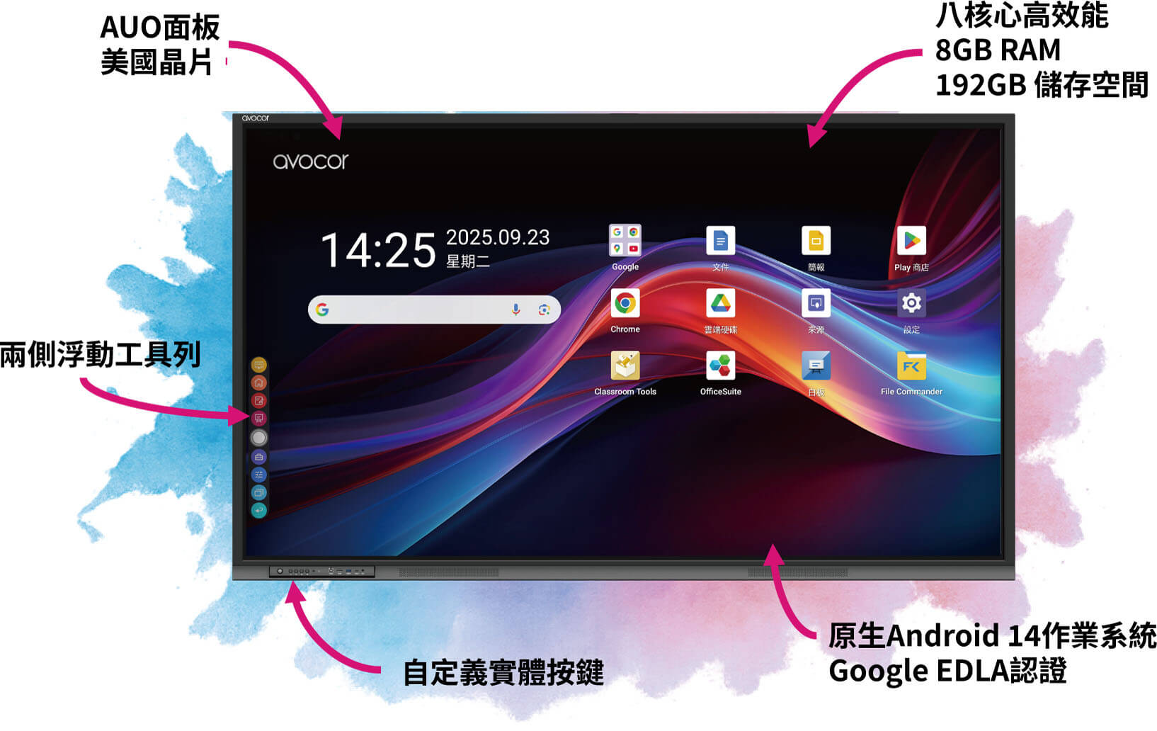 Android14,Google EDLA 認證, 豐富的教學互動體驗,AI智慧,暢快書寫